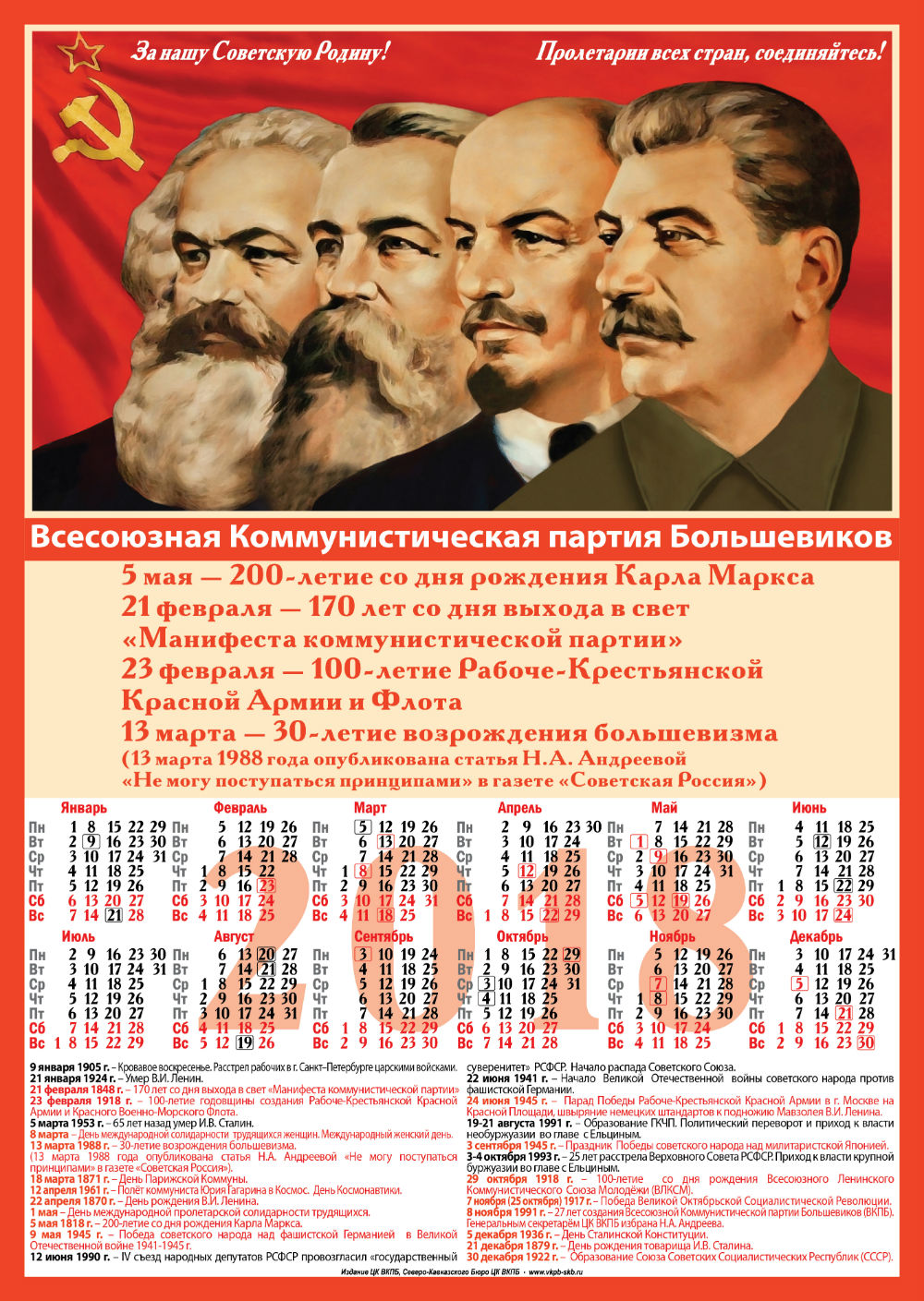 Издание ЦК ВКПБ, Северо-Кавказского Бюро ЦК ВКПБ предлагает приобрести календарь на 2018 год размером А-3.