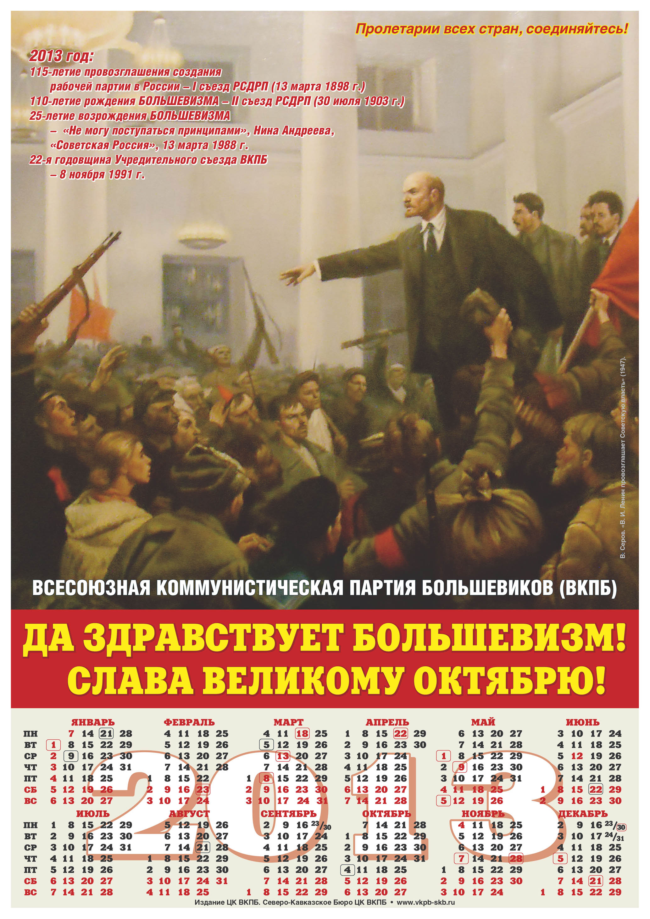 Издание ЦК ВКПБ Северо-Кавказское Бюро ЦК ВКПБ; издает цветной календарь (формат А3) на 2013 год.
