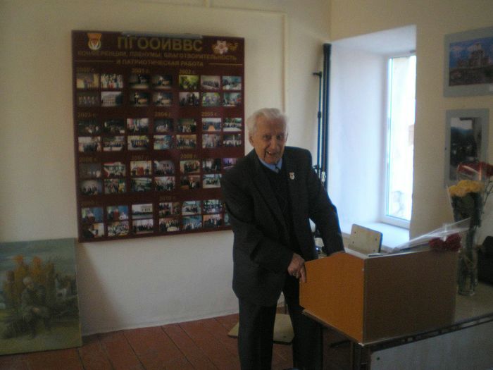 Затем перед собравшимися выступил Председатель организации т. Николай Тихонович Литвиненко, рассказавший о деятельности организации за десять лет и по патриотическому воспитанию молодёжи и т.д.