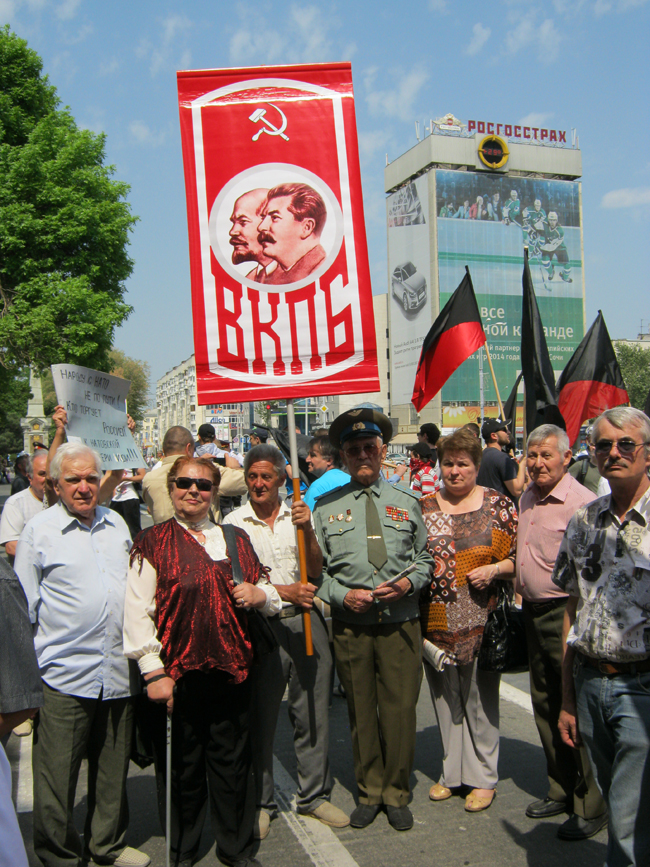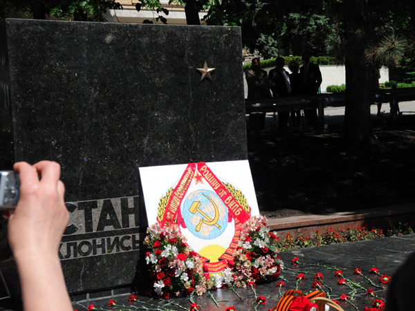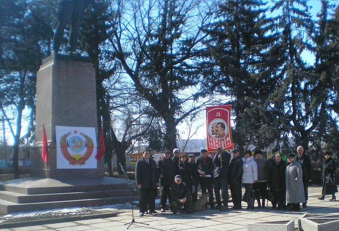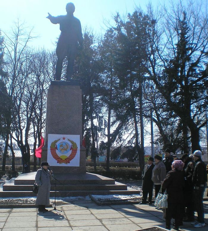 До начала митинга большевики выставили Герб СССР, Штандарт ВКПБ, два красных флага с серпом и молотом и закреплены на памятнике В.И. Ленина. Были возложены цветы… Исполнялись песни о Ленине, Сталине и революции.