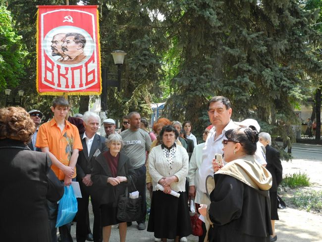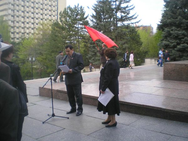 Был ясный солнечный день. На митинге присутствовали члены ВКПБ, КПРФ и ветеранские организации города.