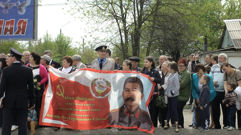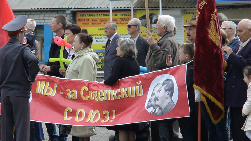 Большевики выставили Штандарт ВКПБ,транспарант: «Имя Победы советского народа над немецко-фашистскими захватчиками – Иосиф Виссарионович Сталин!»,распространялись газеты,листовки: « К событиям на Юго-Востоке Украины ( апрель 2014г.). Мнение ЦК ВКПБ».