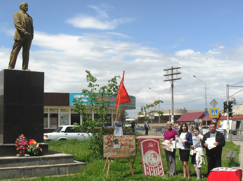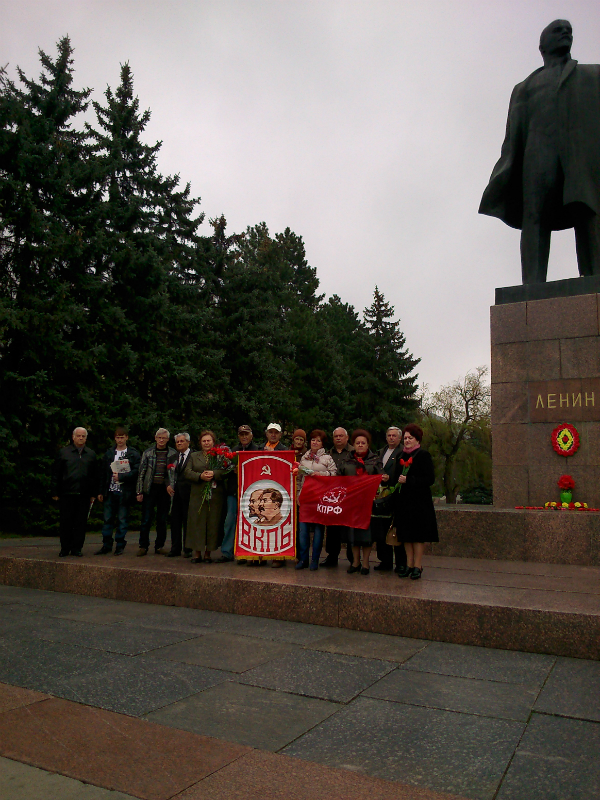 1 Мая 2014 года - в День международной солидарности трудящихся, большевики возложили живые цветы к памятнику Владимира Ильича Ленина, развернули партийную атрибутику и провели пикет под лозунгами: « Мы солидарны с народом Украины в их борьбе против диктаторского режима в Киеве и его хозяев на Западе!»