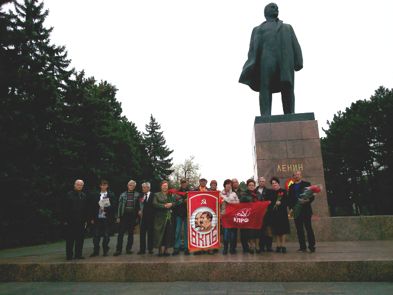 В г.Пятигорске 22 апреля к памятнику В.И.Ленина в честь 144-й годовщины со дня рождения В.И.Ленина –вождя трудящихся всего мира,создателя коммунистической партии большевиков, руководителя Победы Великой Октябрьской Социалистической Революции,были возложены цветы представителями партийных организаций ВКПБ,КПРФ,студентов…