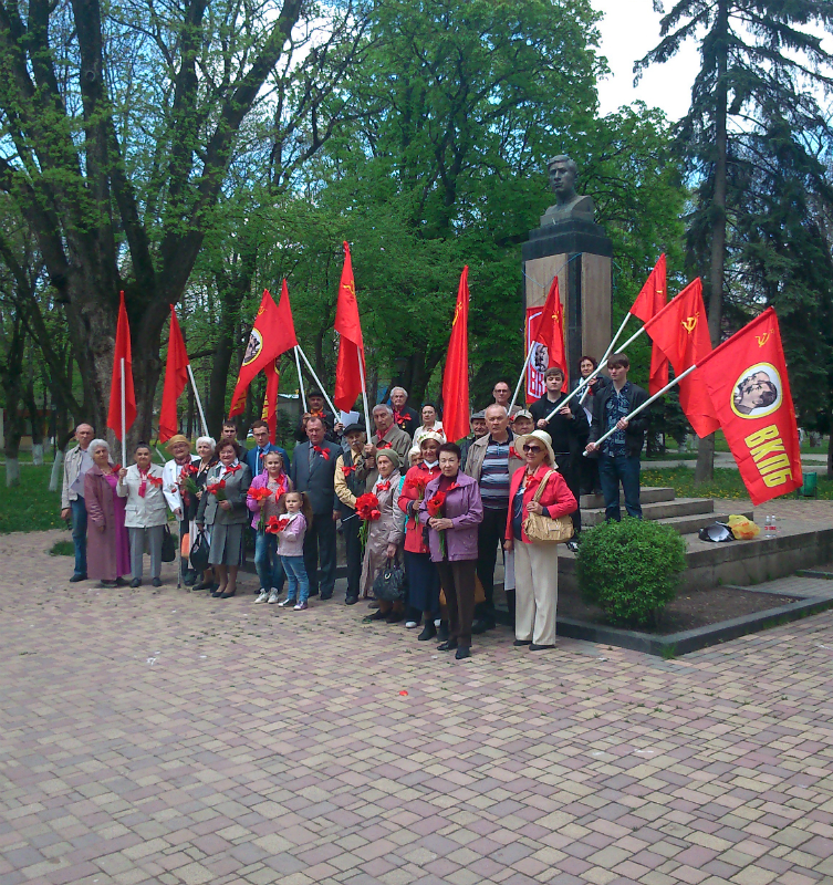 Представители партийных организаций ВКПБ в г. Пятигорске 22 апреля у памятника В.И. Ленина на пл. им. В.И. Ленина провели торжественный митинг в честь 145 – летия со дня рождения Владимира Ильича Ленина – создателя партии большевиков, вождя мирового пролетариата, великого государственного деятеля, создателя союза народов – СССР.
