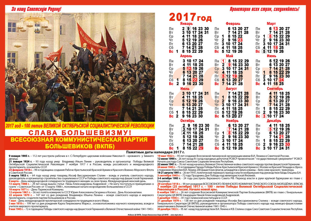 Товарищи! Приобретайте календари на 2017 год – год 100-летия Великой Октябрьской Социалистической Революции.