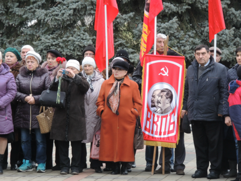 Большевики  г. Мин-Воды  провели собрание у памятника В.И. Ленина 24 января, посвящённое Дню памяти Владимира Ильича Ленина. Были выставлены: красный флаг ВКПБ с зеркальным изображением В.И. Ленина и И.В. Сталина, красные флаги с серпом и молотом, транспарант: « Мы за Советский Союз!».