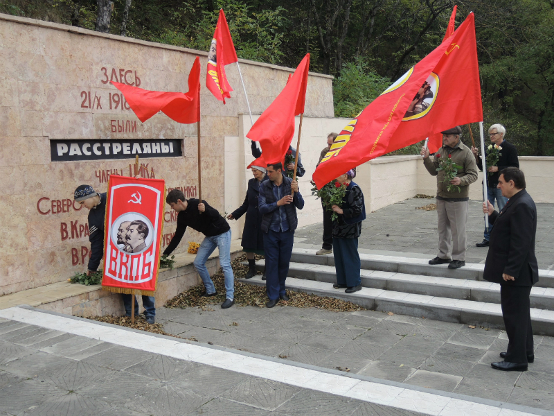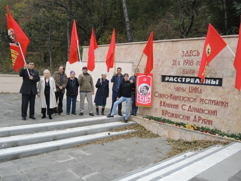 В год 100-я Великой Октябрьской Социалистической Революции в России, в г. Пятигорске у памятника « Мемориальная стена» 22 октября 2017 года большевики провели пикетирование с возложением цветов памяти большевиков – членов ЦИКа Северо-Кавказской Республики и других большевиков, расстрелянных на этом месте предателем Сорокиным в октябре 1918 года.