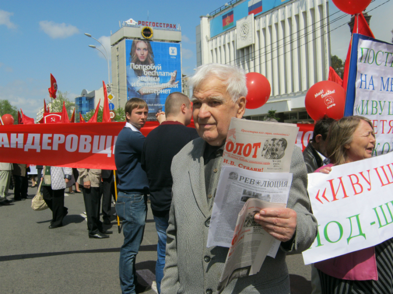 Митинг закрылся после исполнения сталинского « Гимна СССР».
