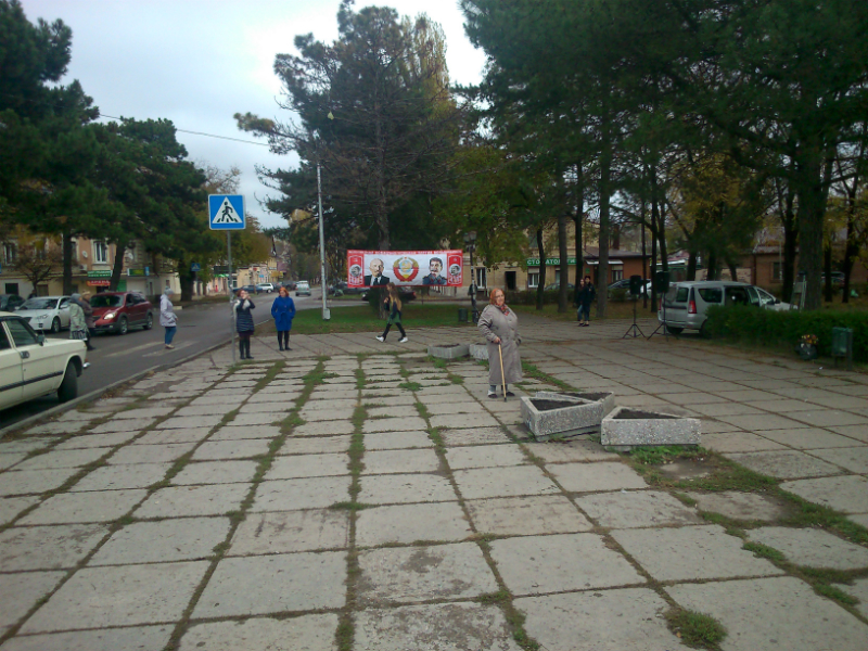 Жители тепло встретили выставленную символику ВКПБ, портреты вождей и все баннеры,благодарили за прекрасно оформленную композицию победителей на баннерах…