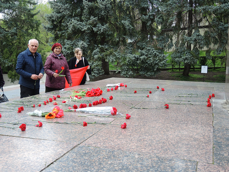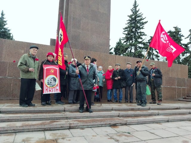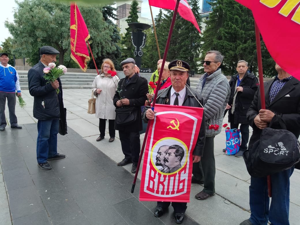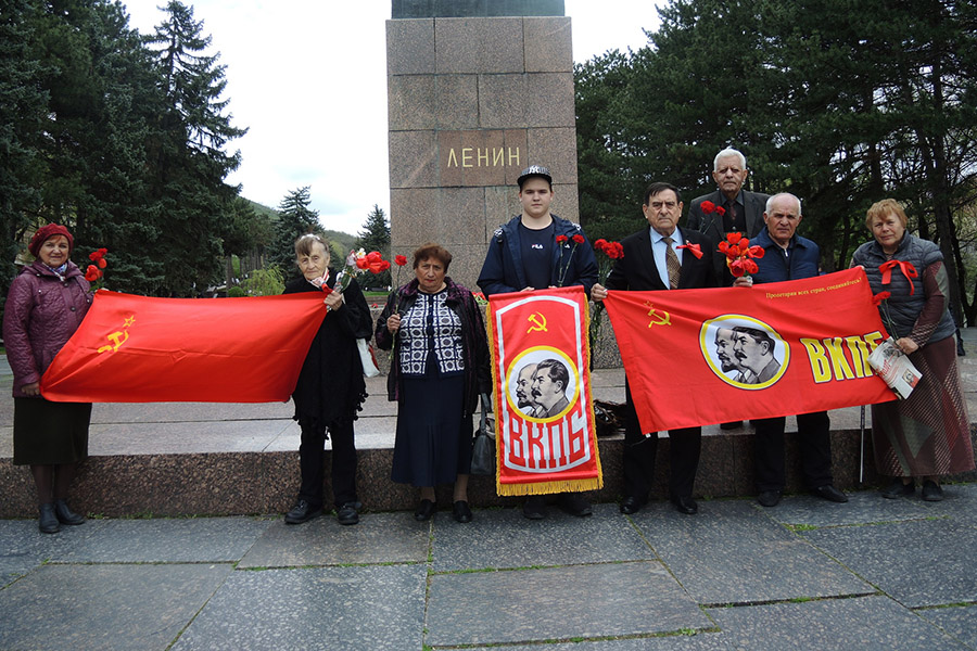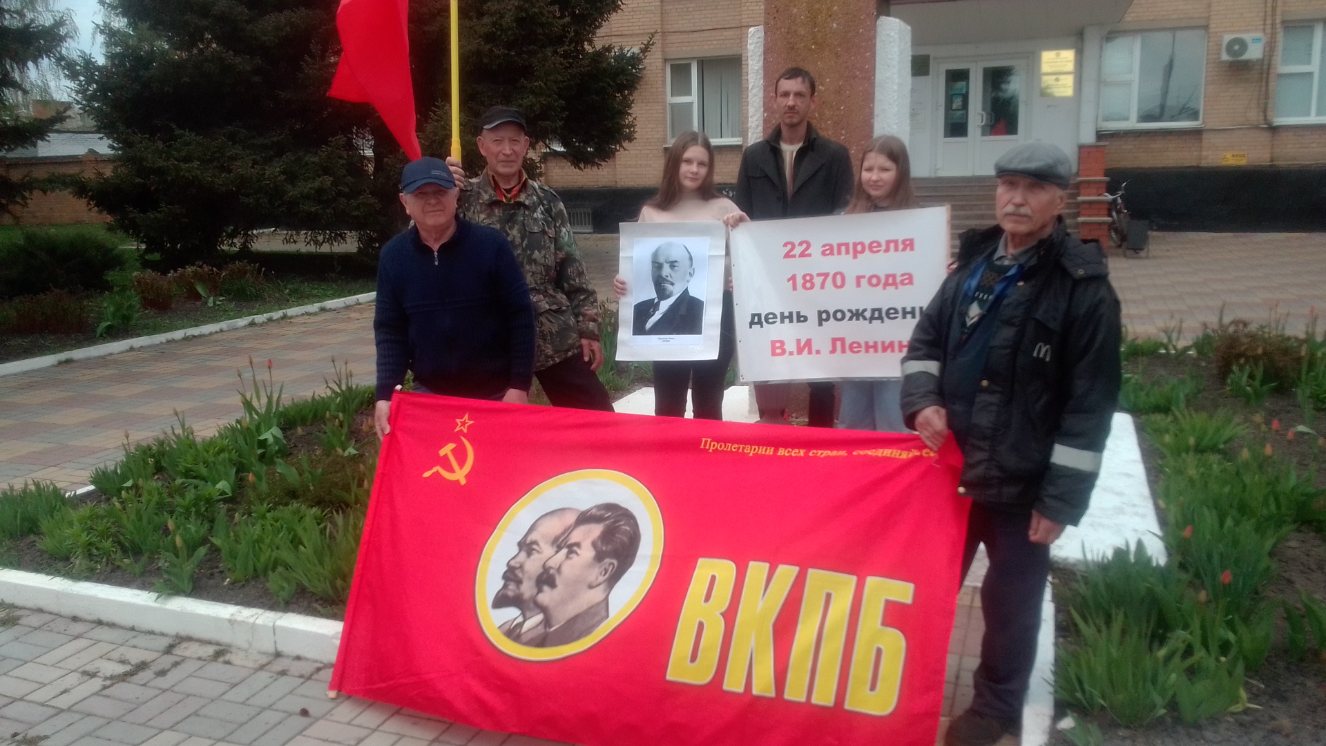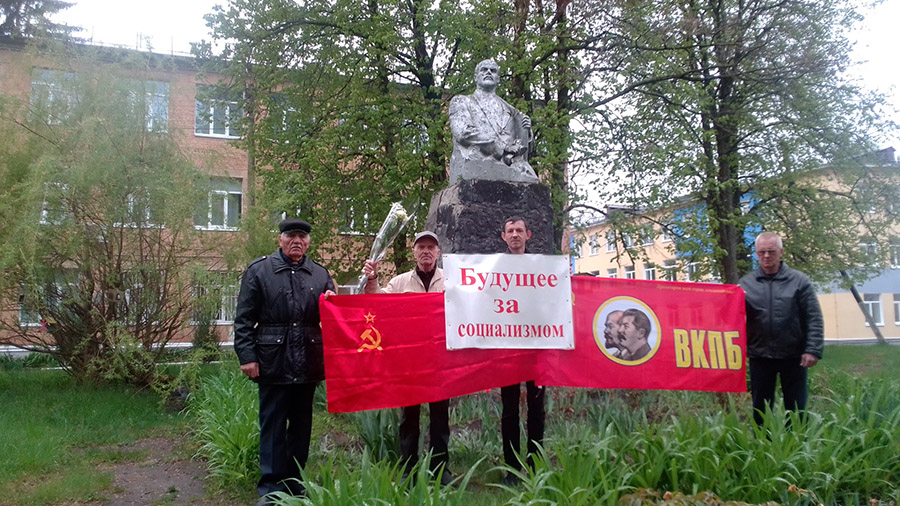 цветы к подножию памятников В.И. Ленина. Выставлялись: Штандарты ВКПБ, красные флаги ВКПБ с изображением вождей В.И. Ленина и И.В. Сталина, красные флаги СССР, распространялась газета "СЕРП и Молот БОЛЬШЕВИКА".