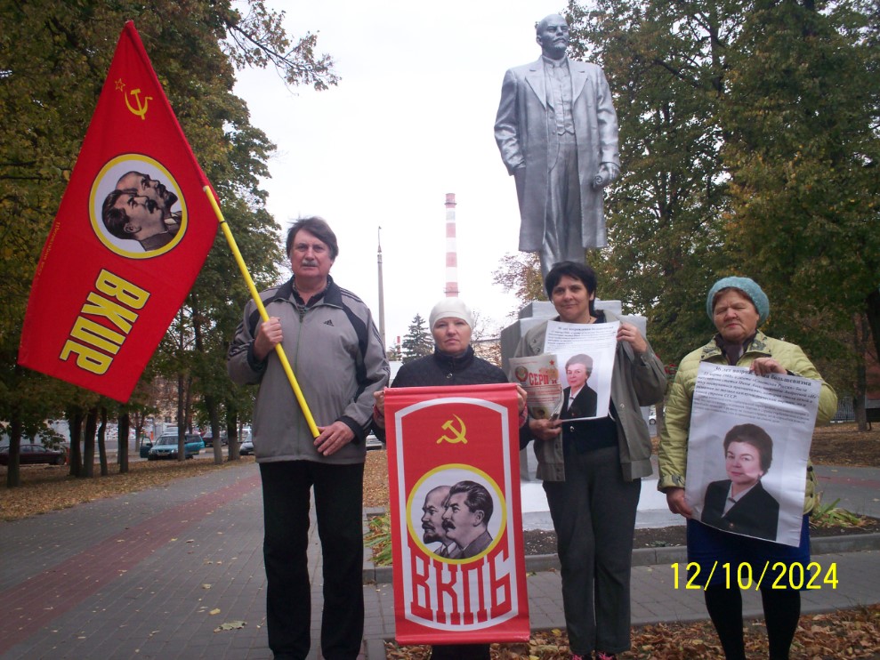 Выставлялись: Штандарт ВКПБ, красный флаг ВКПБ с изображением вождей В. И. Ленина и И. В. Сталина, красный флаг СССР. Распространялись газеты «Серп и Молот БОЛЬШЕВИКА», календари ЦК ВКПБ на 2025 год, проводилась агитационная работа. Состоялось открытое партийное собрание ВКПБ, посвящённое этим двум датам.