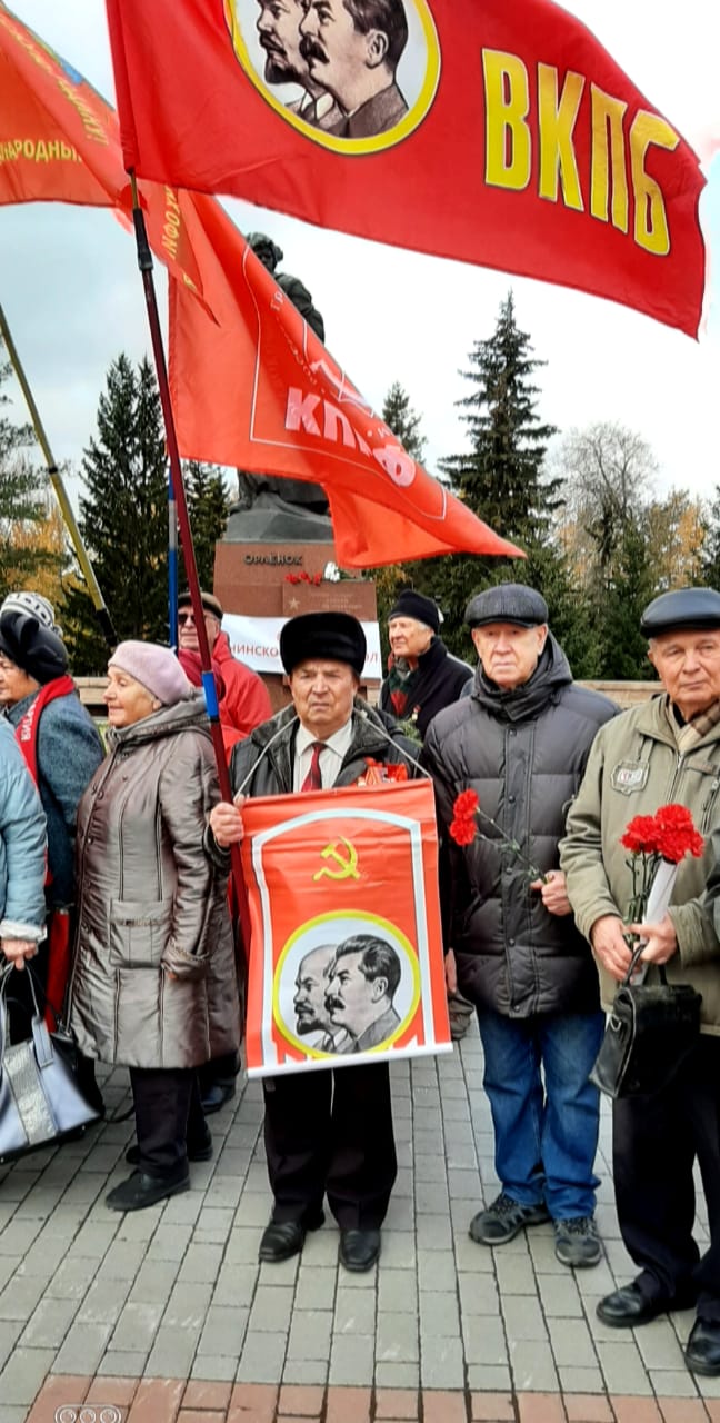 Товарищи! Члены ВКПБ, друзья, сочувствующие на территории Советского Союза и за рубежом! Ветераны Красной Армии и ветераны труда, ветераны партизанского движения! Мы поздравляем Вас со 107-й годовщиной Победы Великой Октябрьской Социалистической Революции и 80-летием освобождения Красной Армией западных земель Советского Союза от войск фашистской Германии и восстановления Государственной границы СССР 7 ноября 1944 г.!