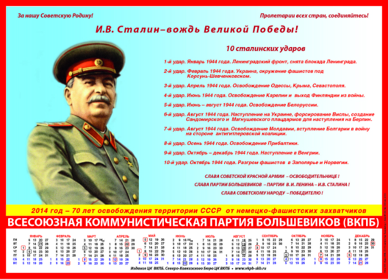 Издание ЦК ВКПБ Северо-Кавказское Бюро ЦК ВКПБ; издало цветной календарь (формат А3) на 2014 год.
