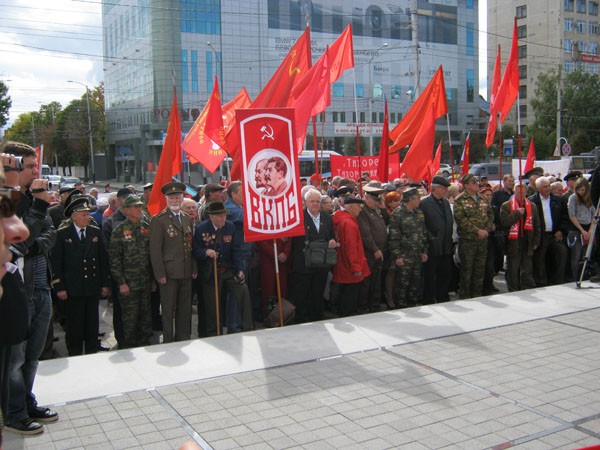 Во главе колонны ( после настойчивого диалога ВКПБ с КПРФ, попытавшаяся оттеснить ВКПБ) рядом с Союзом Советских Офицеров Кубани были и большевики с Штандартом ВКПБ и Красным Флагом с Серпом и Молотом во главе с секретарём Краснодарского краевого комитета ВКПБ т. Тютюнниковым Н. А.. Распространялись листовки: «18 лет годовщине защиты Верховного Совета РСФСР», «Выборам в Госдуму-активный бойкот!», газеты: «Серп и Молот». У «Вечного Огня Славы» состоялся большой митинг…