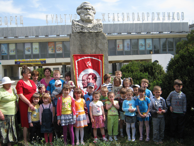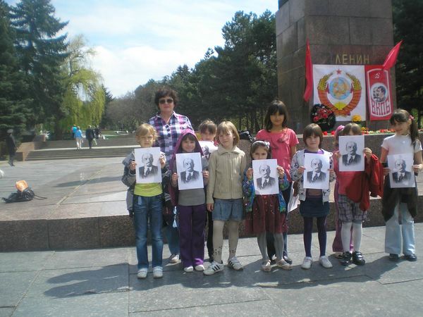 5 мая 2012 г. в г. Мин-Воды дети у памятника Карла Маркса в день его рождения.