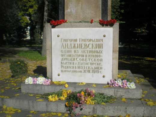В г. Пятигорске 12 октября 2013 г. коммунисты возложили цветы к памятнику Анджиевского Г. Г. - первого Председателя Совдепа г. Пятигорска, первого секретаря Пятигорской организации большевиков.