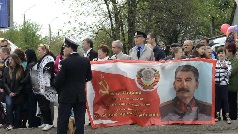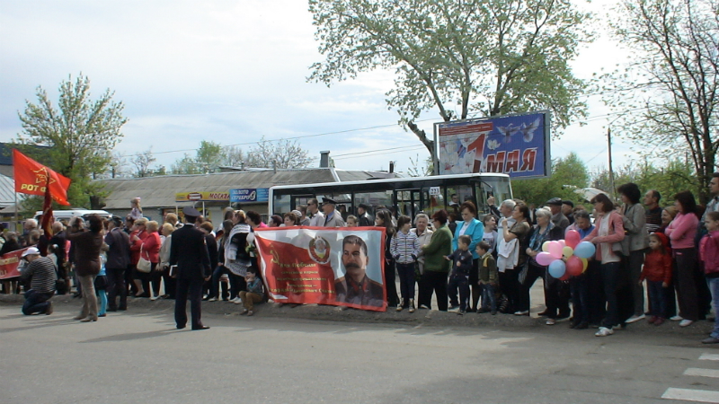 Большевики выставили Штандарт ВКПБ,транспарант: «Имя Победы советского народа над немецко-фашистскими захватчиками – Иосиф Виссарионович Сталин!»,распространялись газеты,листовки: « К событиям на Юго-Востоке Украины ( апрель 2014г.). Мнение ЦК ВКПБ».