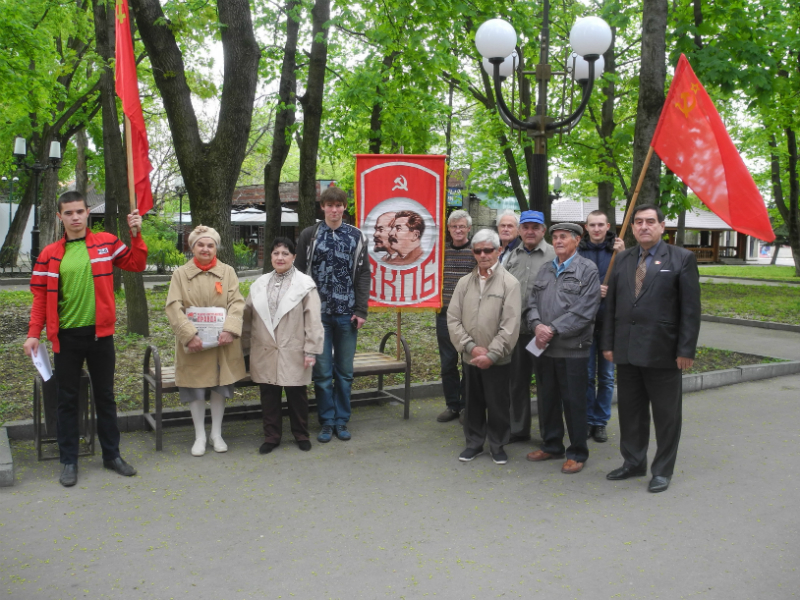 1 Мая 2014 года - в День международной солидарности трудящихся, большевики возложили живые цветы к памятнику Владимира Ильича Ленина, развернули партийную атрибутику и провели пикет под лозунгами: « Мы солидарны с народом Украины в их борьбе против диктаторского режима в Киеве и его хозяев на Западе!»