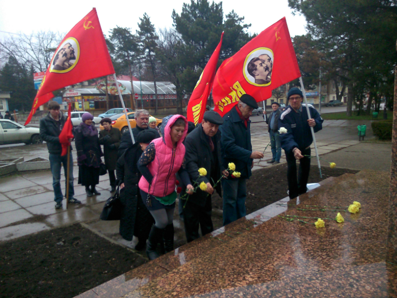 В честь этой знаменательной даты 14 марта 2015 года представители партийных организаций ВКПБ в ясный солнечный день возложили цветы в г. Мин-Воды к памятнику К.Маркса, к « Огню Вечной Славы» и к братским могилам павшим красноармейцам за нашу Советскую Родину.