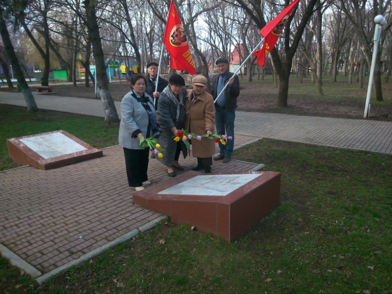 Представители партийных организаций ВКПБ в г. Пятигорске 22 апреля у памятника В.И. Ленина на пл. им. В.И. Ленина провели торжественный митинг в честь 145 – летия со дня рождения Владимира Ильича Ленина – создателя партии большевиков, вождя мирового пролетариата, великого государственного деятеля, создателя союза народов – СССР.