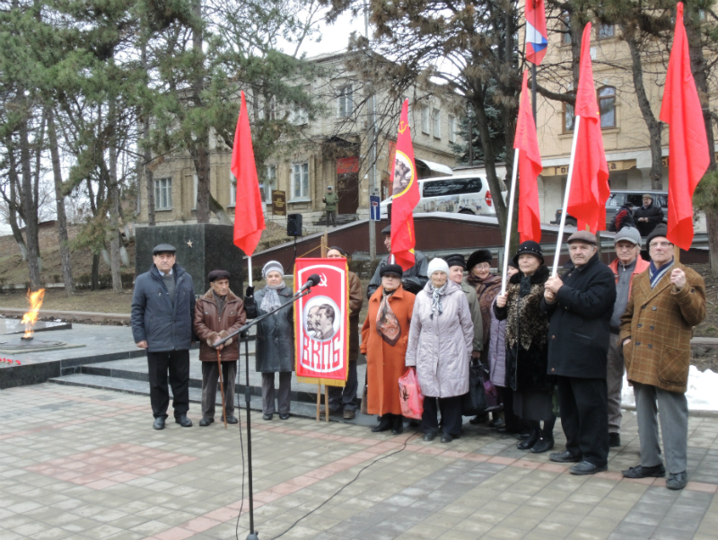 Большевики  г. Мин-Воды  провели собрание у памятника В.И. Ленина 24 января, посвящённое Дню памяти Владимира Ильича Ленина. Были выставлены: красный флаг ВКПБ с зеркальным изображением В.И. Ленина и И.В. Сталина, красные флаги с серпом и молотом, транспарант: « Мы за Советский Союз!».