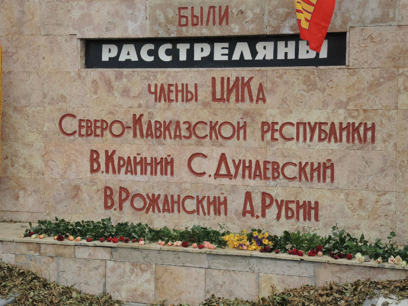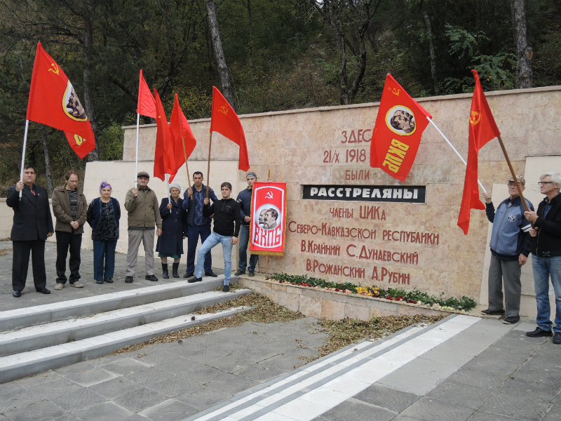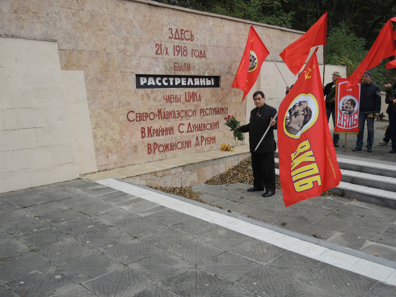 В год 100-я Великой Октябрьской Социалистической Революции в России, в г. Пятигорске у памятника « Мемориальная стена» 22 октября 2017 года большевики провели пикетирование с возложением цветов памяти большевиков – членов ЦИКа Северо-Кавказской Республики и других большевиков, расстрелянных на этом месте предателем Сорокиным в октябре 1918 года.