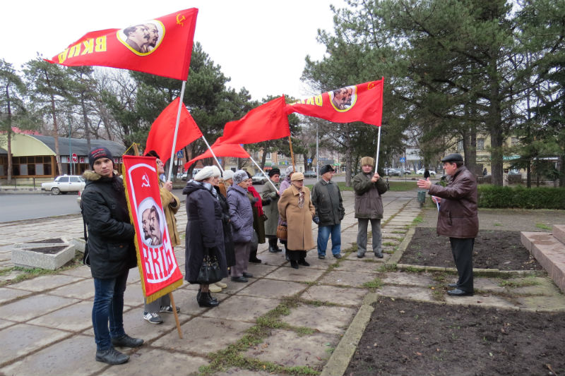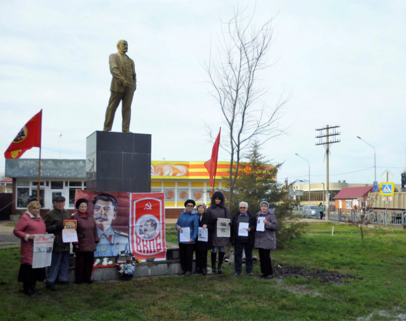 21 декабря в посёлке Ильском Северского района Краснодарского края местные активисты ВКПБ провели у памятника Владимиру Ильичу Ленину возложение живых цветов к портрету Сталина и агитационное 2-х часовое пикетирование, посвящённое 138-ой годовщине со дня рождения Иосифа Виссарионовича Сталина.