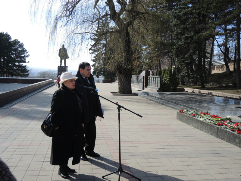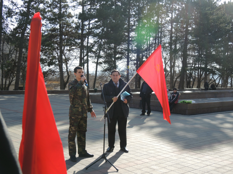 к « Огню Вечной Славы». До начала митинга звучали песни, славившие Красную Армию и генералиссимуса СССР И.В. Сталина, распространялись газеты « Большевистский Серп и Молот» и « Революция», проводилась агитационная работа.